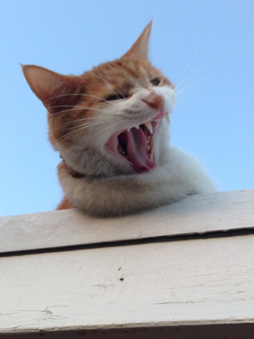 Everyone in prone positions, some bodies perpendicular to others, some just out there on their own, spanning that one corner of living room rug, some sprawling underneath the chaise longue I try to endure as my son makes mud pies, the sprinkler raining on him. If our animals don’t like each other, it’s too hot too matter. Heat, the great equalizer. We only have 3 cats and 1 dog, but all the sprawling makes us feels as if we have a zoo. The dog raises his head briefly from the Pergo, touches noses with a cat passing on its way to the food bowl, where the cat will lie down to eat. The A/C is on, but no animals seem to notice. Crazy cats who hate each other suddenly love each other and love the dog. This is what happens in 107 degrees.
