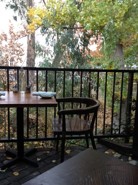 Sitting on the patio at Peddler’s Fork, alone out here as it’s a SoCal pre-Christmas bit of chilly, i.e., 60 degrees, way too cold for the cycling clan packing the tables indoors, brrr, but perfect for me as I’m the kind of writer who likes to wear sweaters, for once, and watch the mallards fuss about down in the gurgling creek and the squirrel