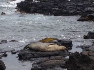 And below is a monk seal, endangered, sleeping. Shh. He probably just ate. After monk seals eat, they must sleep before swimming again, or they’ll throw up and possibly die. Kind of like me (Bukowski? Ah, I wish). Good night, Merwin! RIP, Twain. Thank you for your deductions and truths pertaining to tropical islalnds. Sometimes, from that one Mulholland Drive “scenic” lookout, the distant hiss of the 101 Freeway is an ocean speaking. Though never paradise.