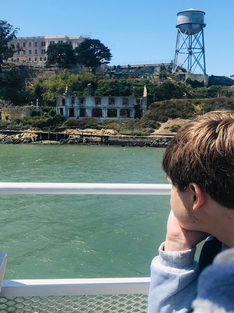 The teen has been across the GG bridge, but he was just a boy then, shorter than his mom and dad vs. the giant, moods-plagued, uber-sensitive young fellow he is now. This is his first time exploring the city. I was hoping to see his eyes widen over his mask as he rode a cable car, but they won’t be running again until August. The enigma of rock and crumbling buildings that is Alcatraz impressed him, though. Also, viewing the bridge’s girded underskirts from a boat…