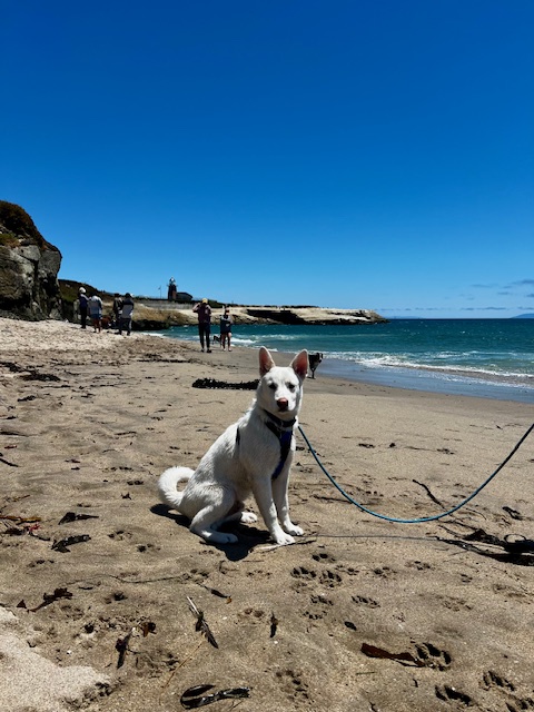 Santa Cruz is no exception. And Santa Cruz has a dog beach. Our puppy, on his longlead, for safety, was stunned by all the gamboling of leash-free dogs.