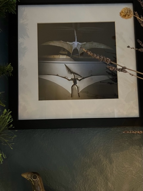 Not a monster, but a Pteranodon (framed photo), and has everything to do with the novel I’m currently revising, which has everything to do with monsters–human, animal, extinct, imagined and otherwise. As I may have mentioned.